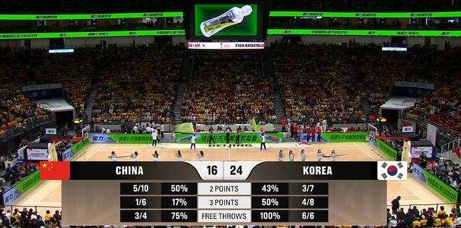 韩国队自知阵地战比拼不过坚决提速打转换,防守端采取联防,韩国队打法明确,出手也相当果断,节中阶段韩国队通过制造犯规+跑轰三分连得10分取得10-3领先,迟迟未能上分,郭士强提前换上胡金秋。