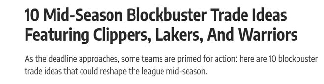 勇士6换2,湖人3换1,快船4换2!交易截止日前将达成的10笔大交易
